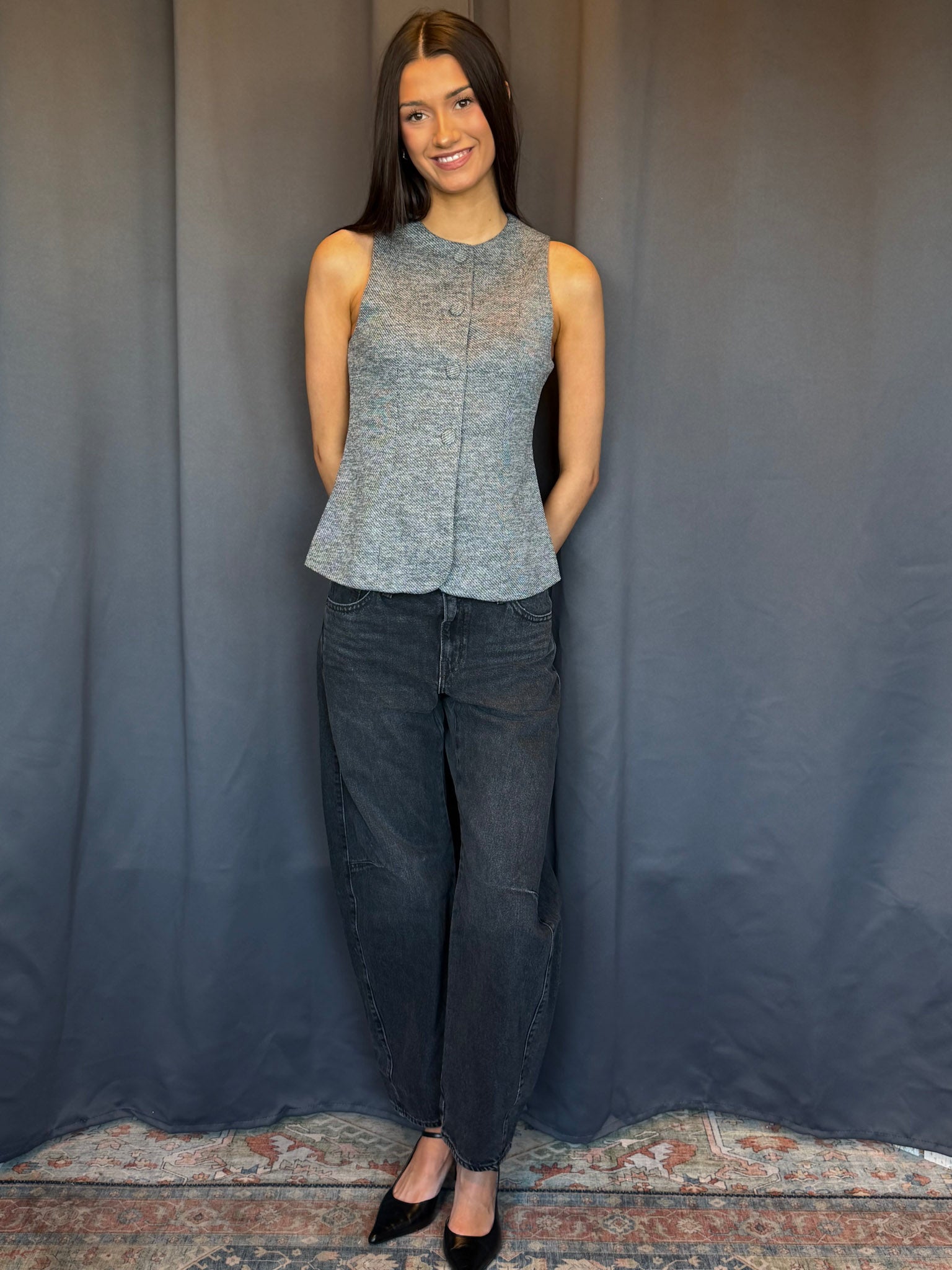 Cute vests help bind an outfit together and this top makes no exception. Wear it with a shacket on top, a pair of relaxed mom-jeans, and chunky boots and you get a relaxed and cool everyday look.