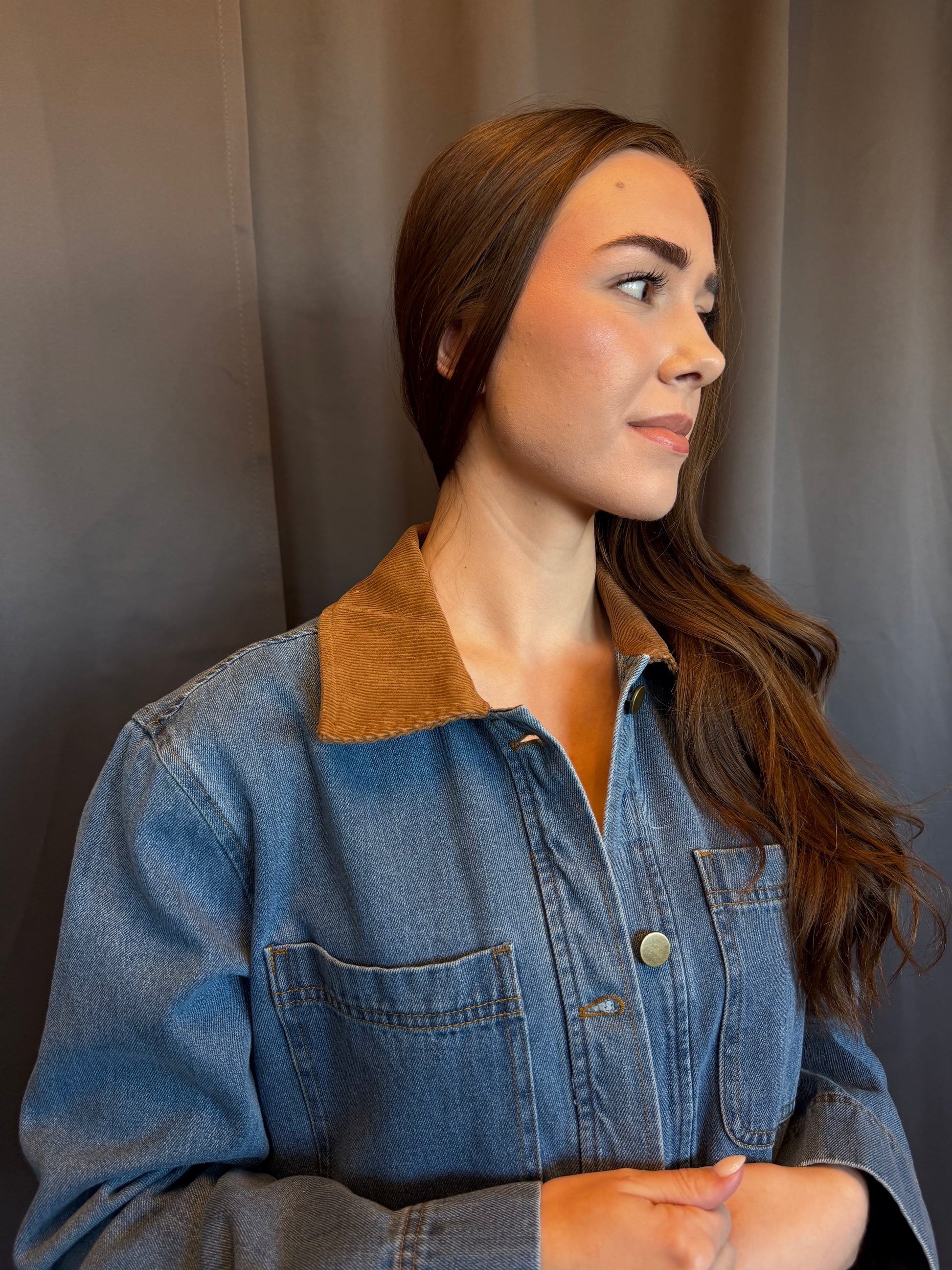 The Flynn jacket delivers effortless style in heavy-weight denim with a perfectly worn-in wash. Featuring a relaxed fit, patch pockets, and a fun contrasting corduroy collar—it's ready to become your go-to layer.