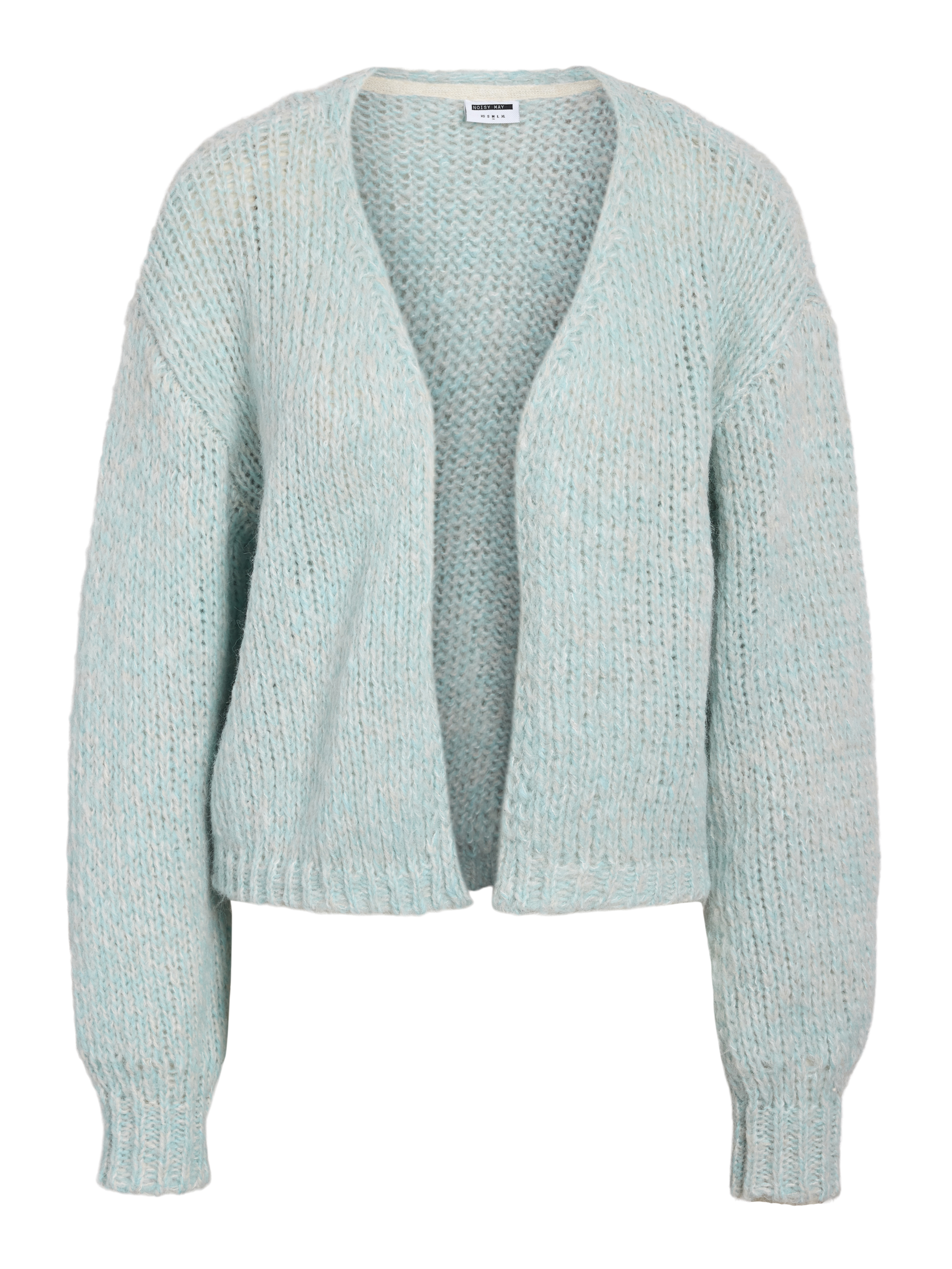 A soft minty /blue and cream melange open cardigan sweater