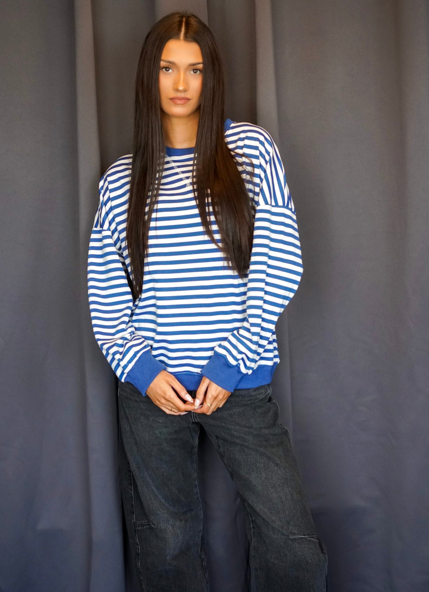 Classic stripe print loose fit pullover top - Contrast rib bands on sleeves, bottom and neckline - Loose fit