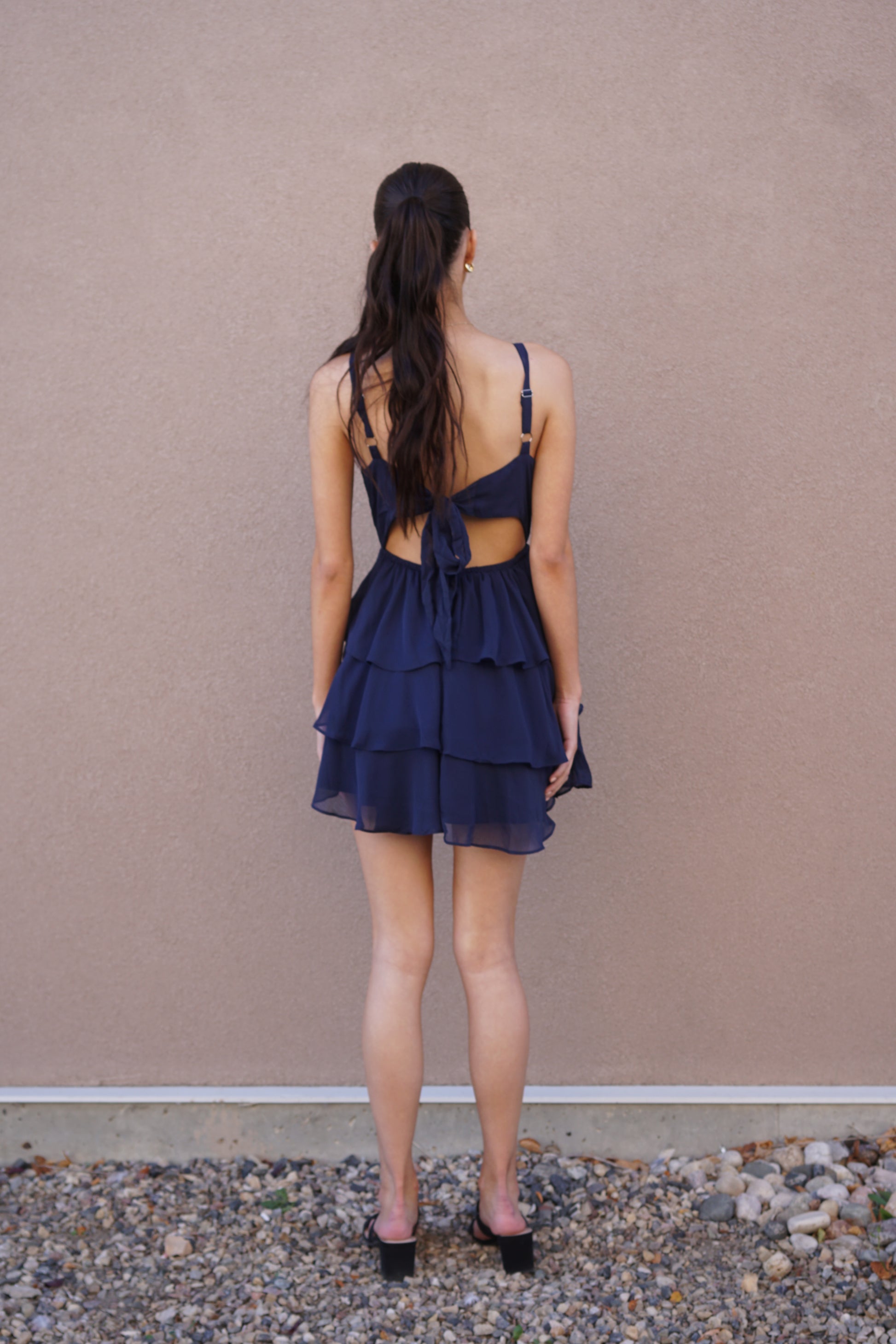 A super short tiered ruffled dress with a tie back! A mini version of our popular long dress the Mademoiselle!
