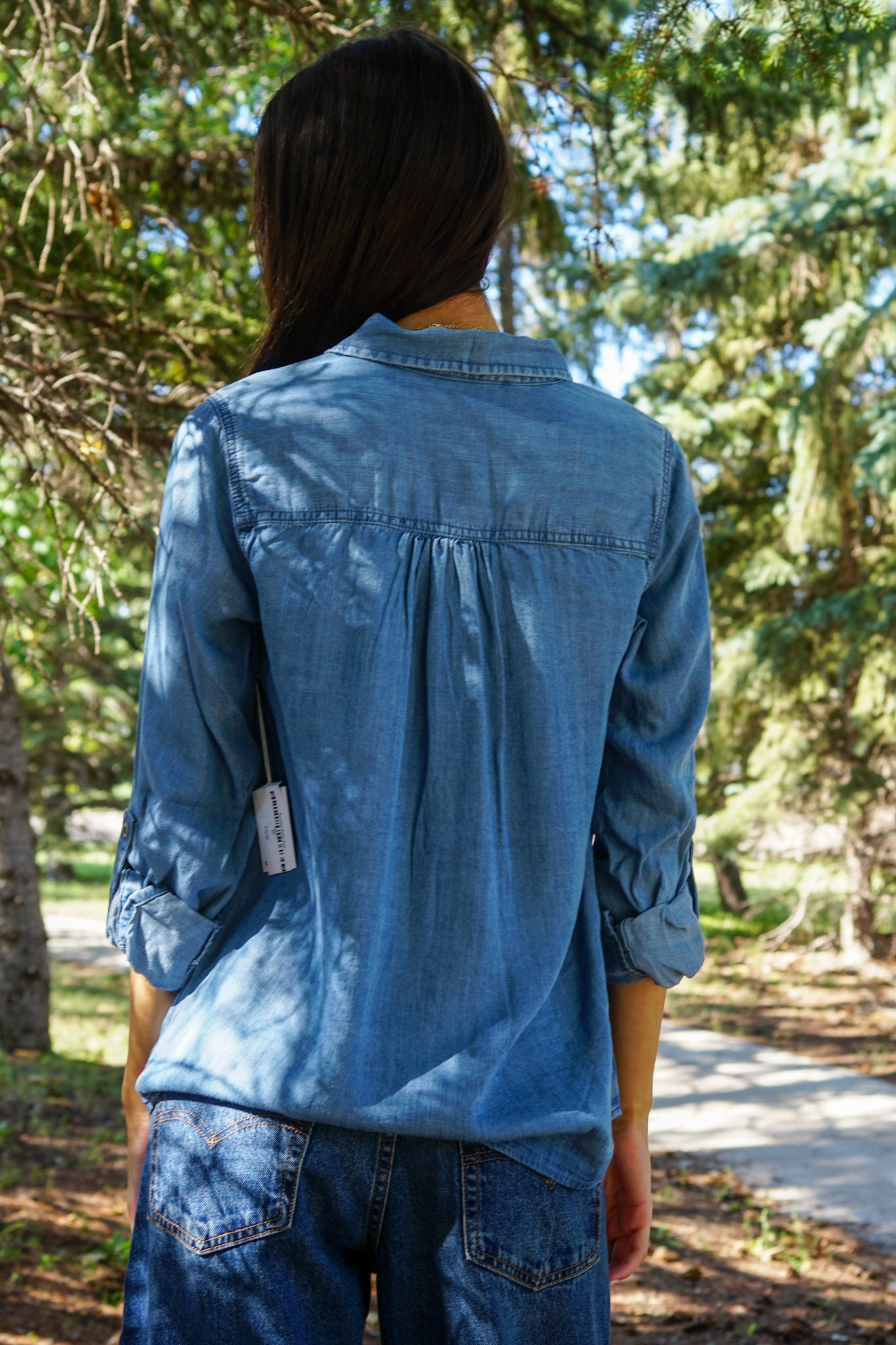 Denim denim is all you will want this fall! Fun rolled sleeved option fit is relaxed. Looks so good many ways!
