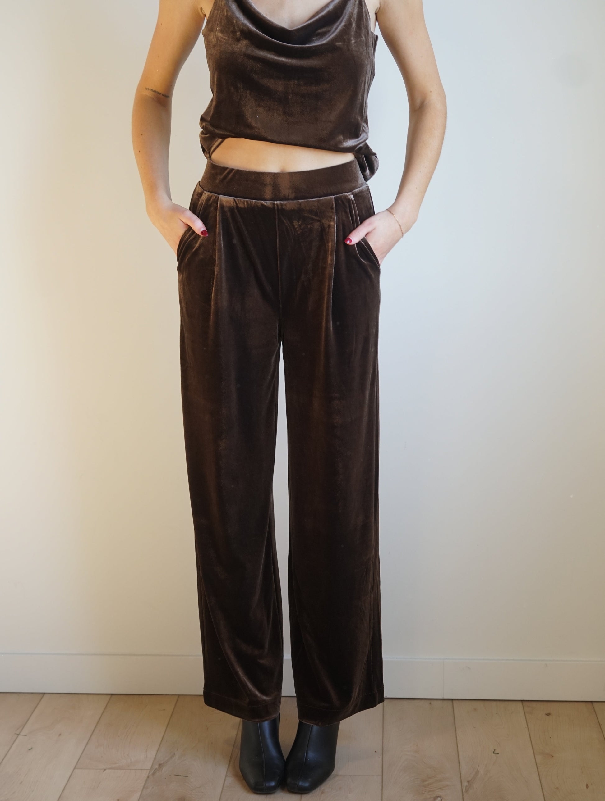 Velvety trouser pant in brown ganache