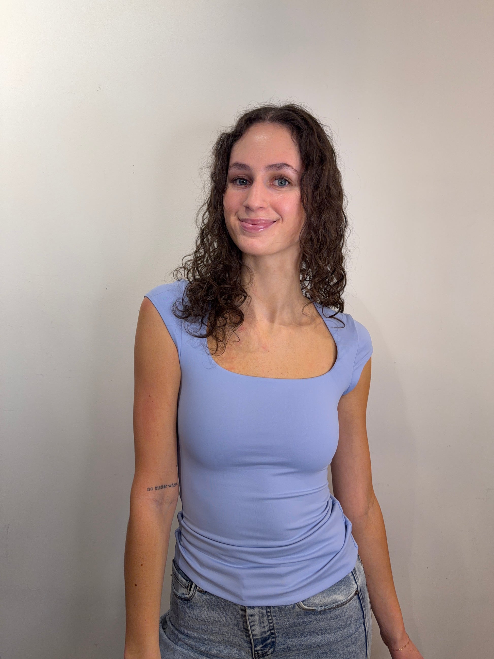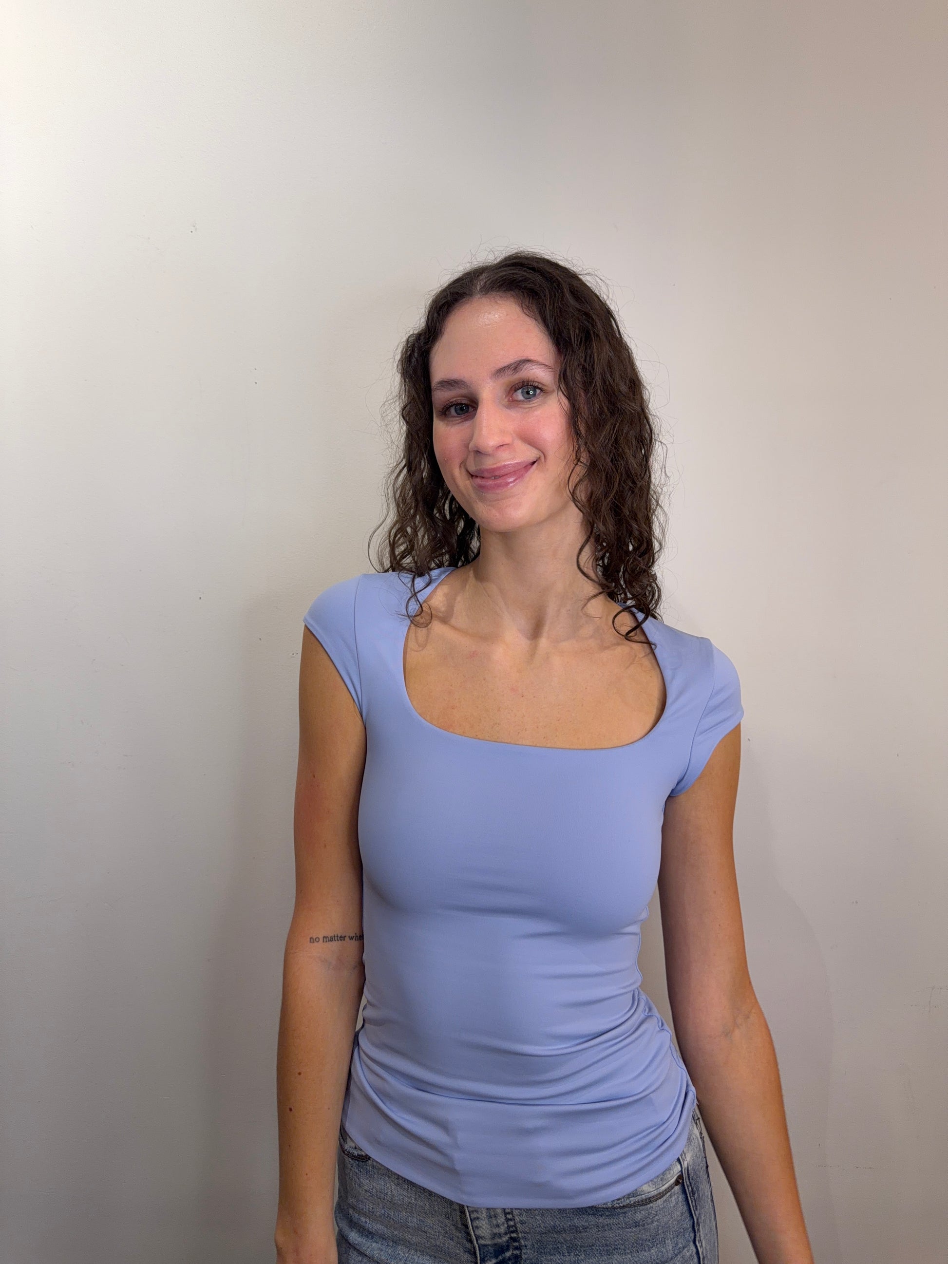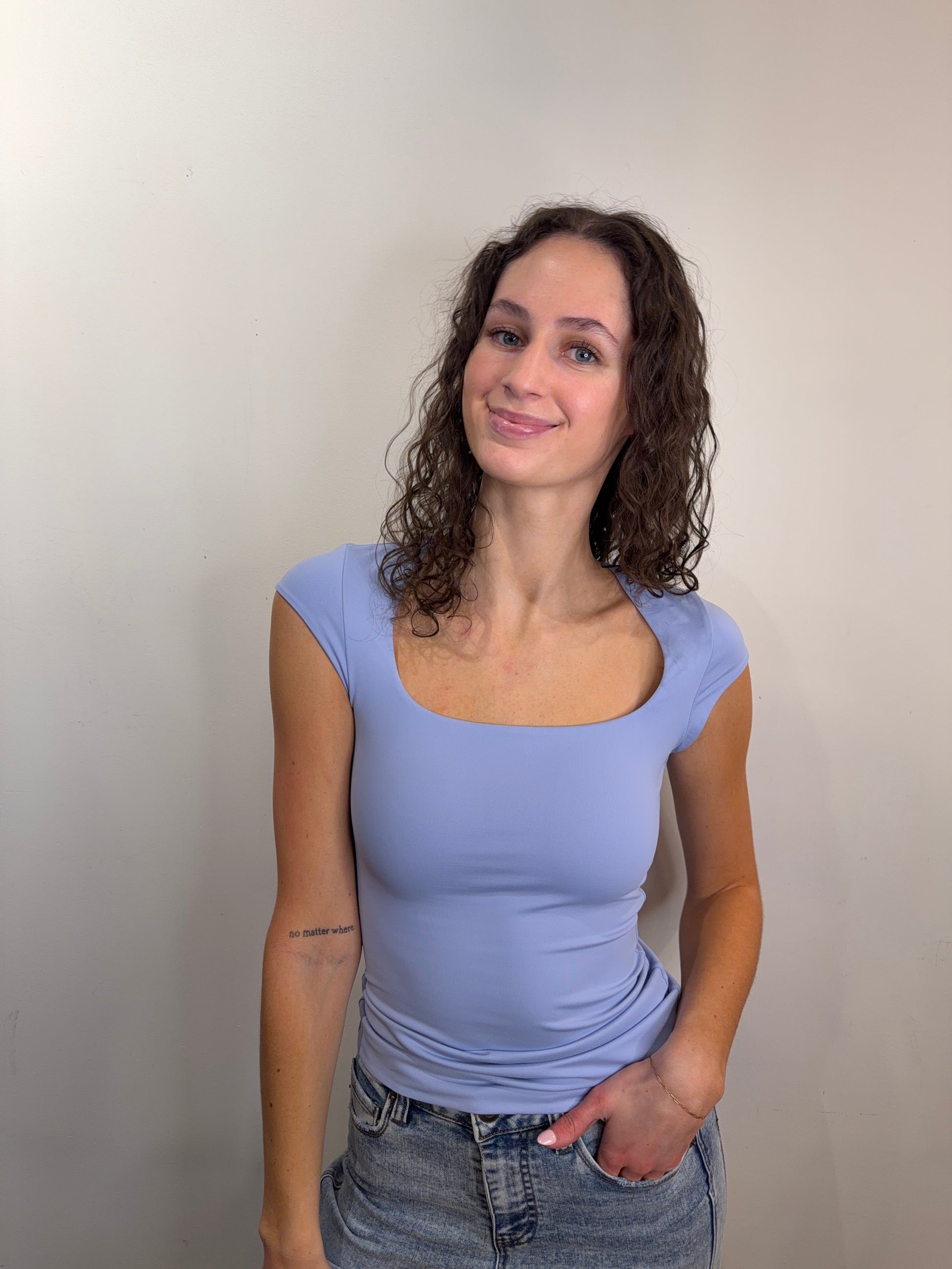 Get ready to feel amazing in this Perri Blue cap sleeve top that does all the heavy lifting for you. With its snug second-skin fit and adorable cap sleeves, you'll look polished whether you're heading to brunch or a night out. The stretchy fabric moves with your body, keeping you comfortable all day long.