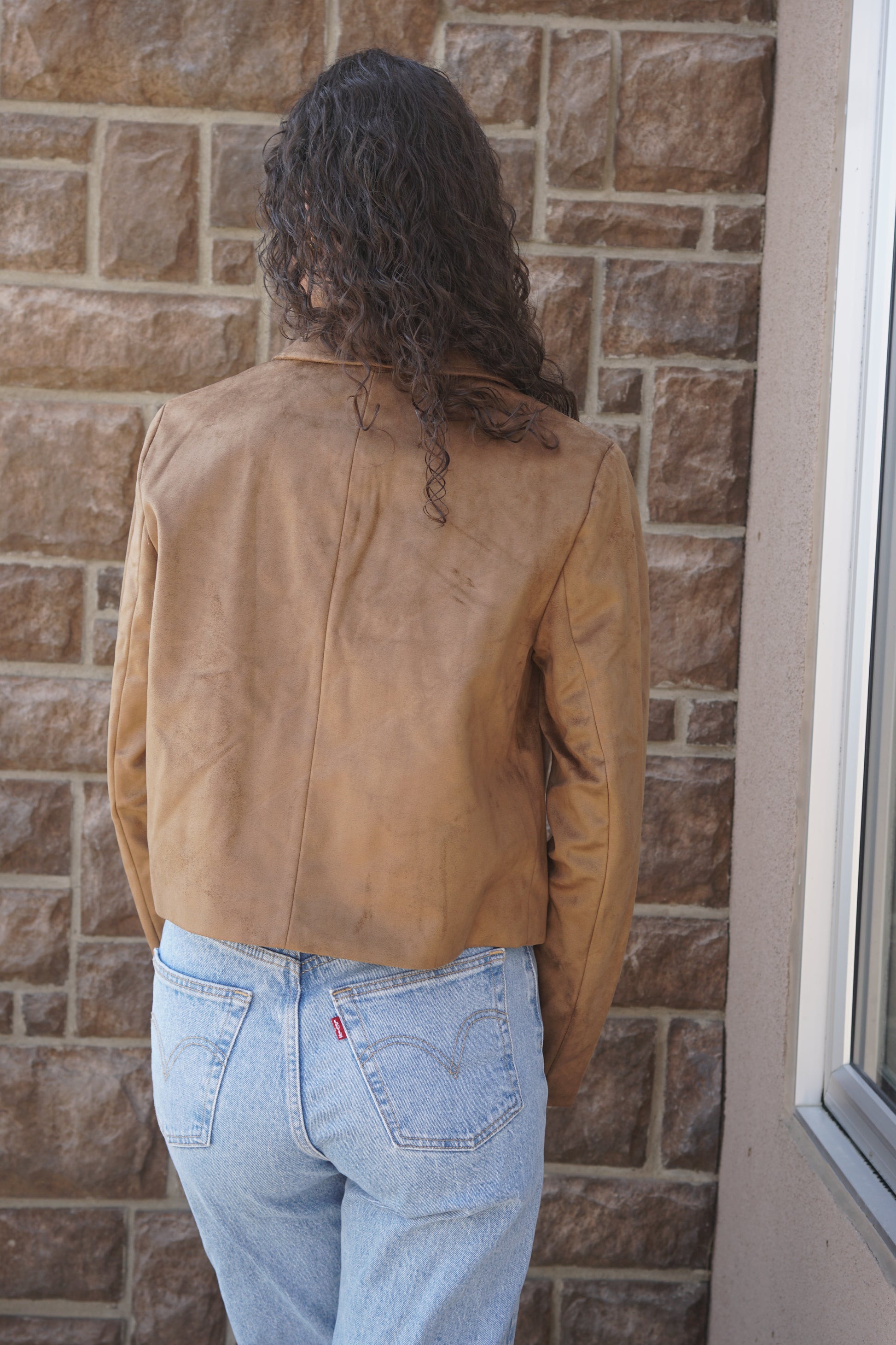 This sleek faux suede jacket hugs your shape perfectly and is fully lined for extra comfort—simply stunning!