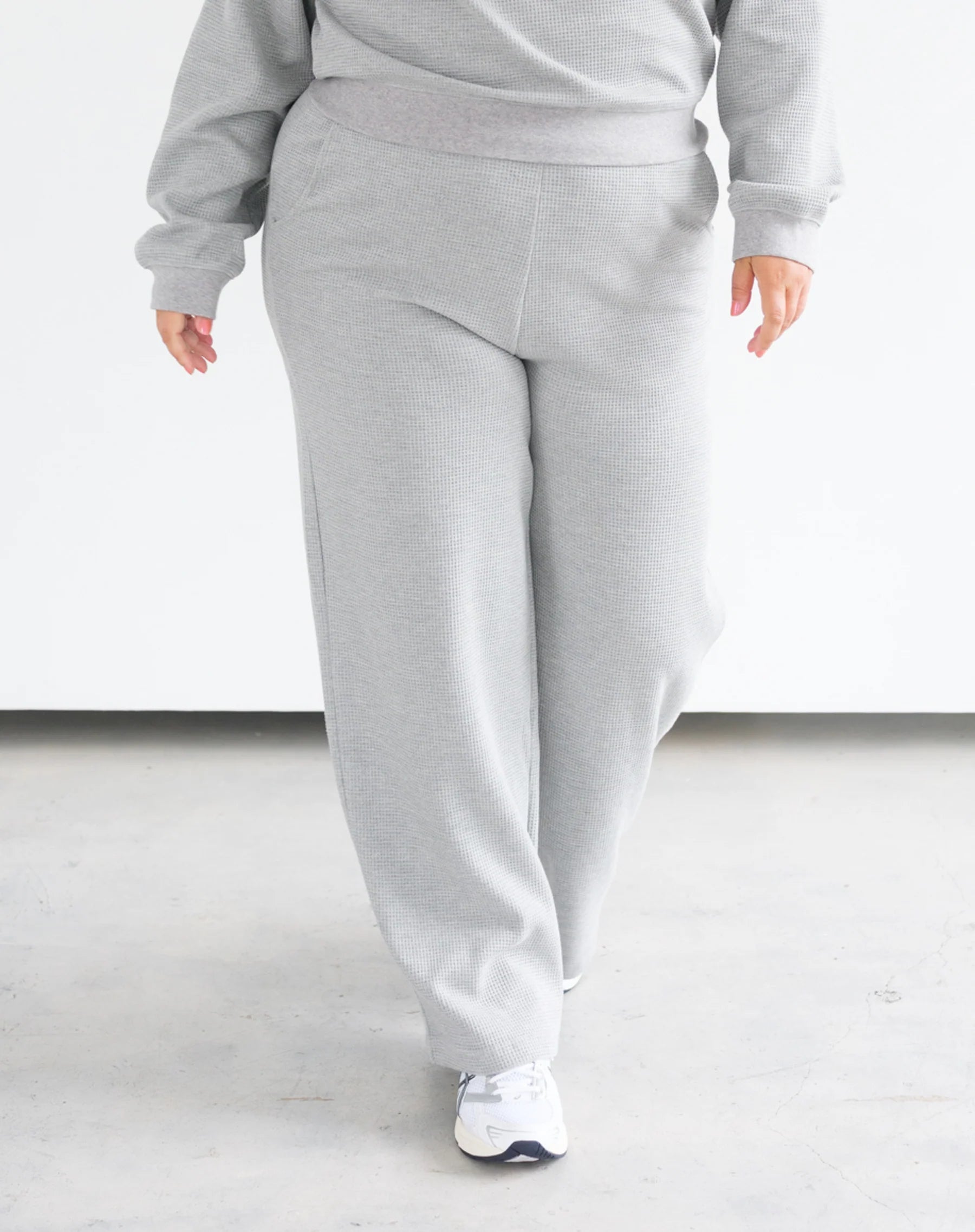 Meet the Waffle Wide Leg Pant: a high-rise, wide-leg silhouette with a 30" inseam, designed for comfort and style. Made from our signature waffle knit — a structured, heavyweight fabric with rich texture